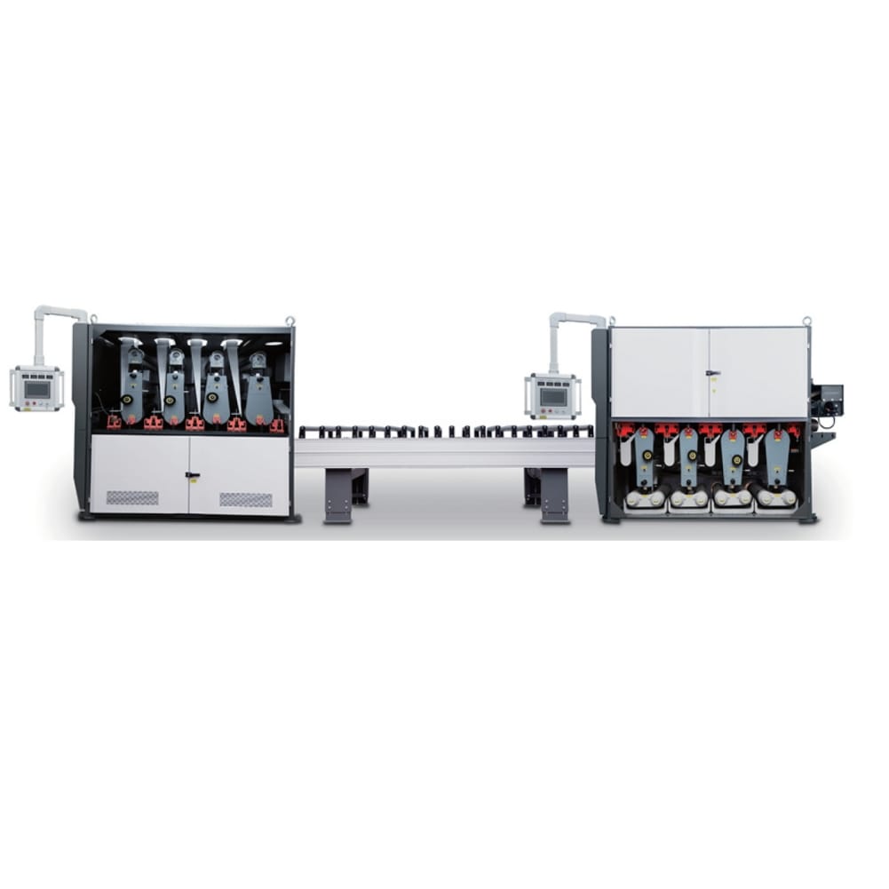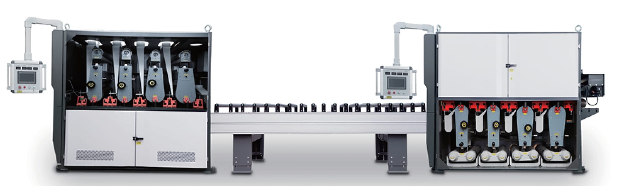 Top wide belt sander with fixed working table, top machine body move up and down, the bottom sander used for sanding the bottom side of panels, make sure top and bottom can be sanded one time.